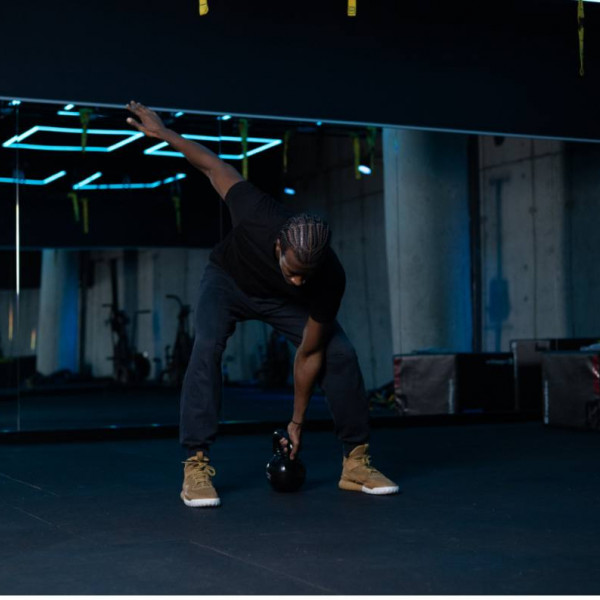 Depending on your workout level, you’ll work with your weight, one-kilogram dumbbells, resistance bands, and sliders and do barre exercises.